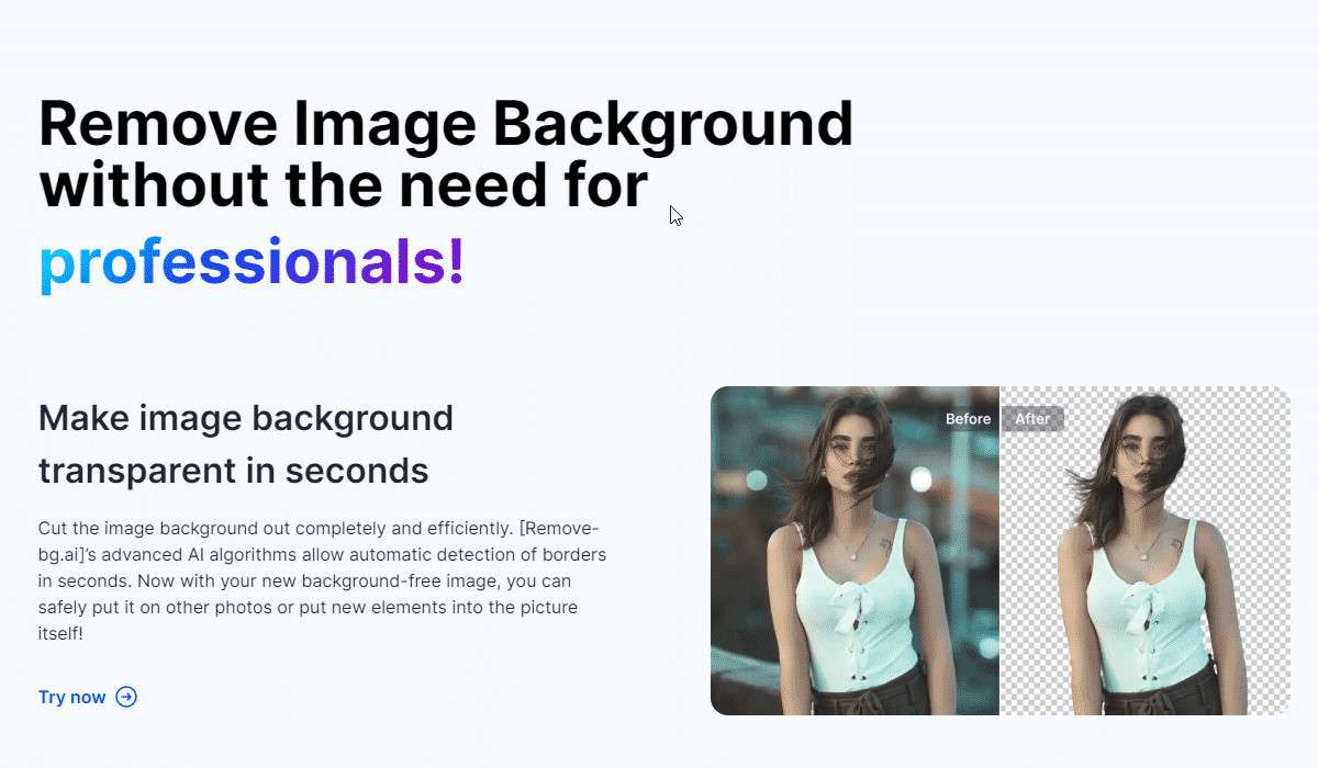 Easily remove Bg or customize your wallpaper with Remove-bg.ai. Our RemoveBg provides high quality image editing and transparent background removal. Supports PNG, JPG and many other file types. Try it for free today!